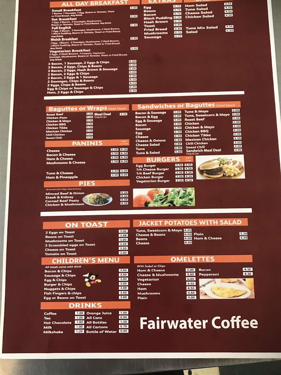 Introducing the menu at Fairwater Cafe, a hidden gem nestled in Cardiff, offers a delightful array of options that cater to every palate. Renowned for its lively breakfast scene, the cafe features satisfying paninis like Mushrooms & Cheese and Bacon & Cheese, along with hearty baguettes and wraps such as succulent Roast Beef and a fulfilling 3 Bacon, 2 Eggs & Chips.